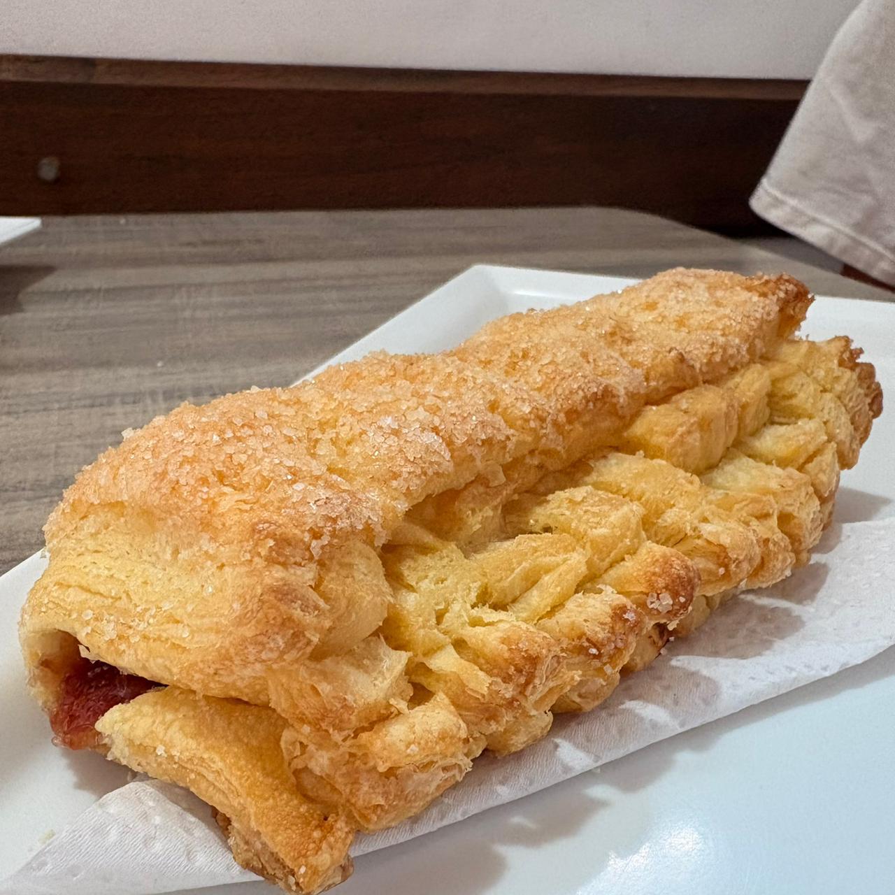 Este clásico de las panaderías curiteñas combina la suavidad de la masa hojaldrada con el dulzor del bocadillo veleño o el arequipe artesanal. Es un postre muy popular entre locales y visitantes por su equilibrio entre ligereza y sabor, y forma parte de la repostería típica que se consume diariamente en el pueblo.