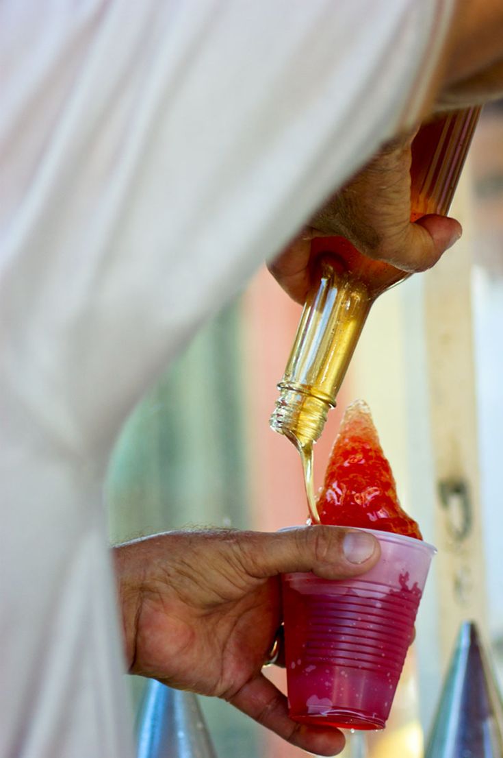 El raspado es un postre refrescante elaborado con hielo raspado al momento y bañado con siropes frutales como fresa, maracuyá, limón o kola. Muchos también lo disfrutan con leche condensada o miel para un sabor más dulce. Es ideal para los días calurosos y muy típico en el Parque Principal y calles principales del municipio.