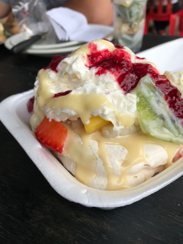 El merengón es un postre vistoso y popular, especialmente entre los turistas. Se prepara con capas de merengue crocante, crema batida y frutas como fresa, guanábana o durazno. Es ligero, colorido y perfecto para quienes buscan algo dulce y cremoso durante su visita. Lo pueden encontrar en Sweet Cloud, revisa nuestros restaurantes para más información.