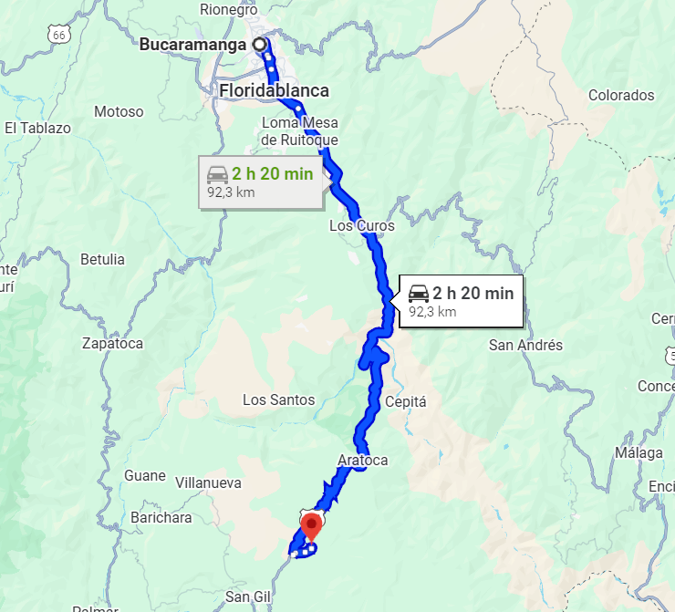 La ruta más frecuente es tomar la vía que conecta Bucaramanga con San Gil. El trayecto dura cerca de 2 horas y 40 minutos. Justo antes de llegar a San Gil, encontrarás el desvío bien señalizado hacia Curití.